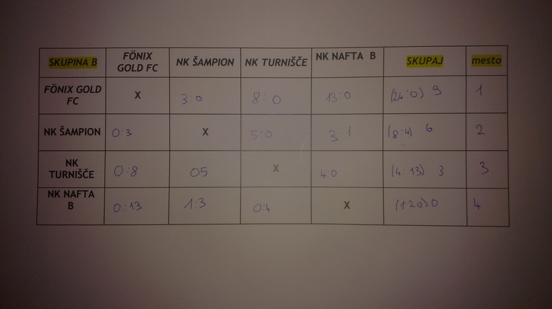 Eredmények:Főnix - Sárszentmiklós 4:0, Főnix - Videoton 2:0, Főnix - Premier09 Ufc 3:0, Főnix - Rácalmás 13:0, Főnix - Kalocsa 0:1